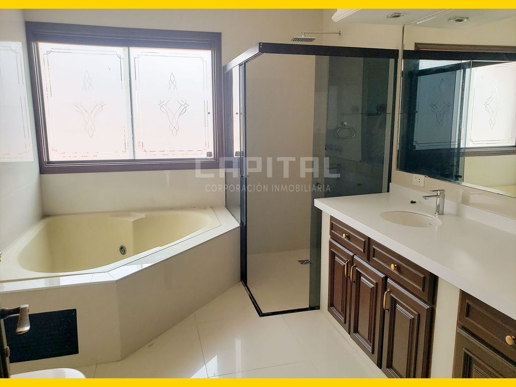AMPLIA CASA EN ALQUILER - CONDOMINIO BARRIO NORTE Ubicación: Zona Norte entre 4to y 5to anillo – Atrás del Mall Las Brisas Superficie de terreno: 500 mt2 Superficie construida: 450 mt2 Precio: $us 2.500 (incluye expensas) CARACTERÍSTICAS: PLANTA ALTA: - 3 dormitorios en suite con baño, vestidor y terrazas - Sala de estar - Escritorio PLANTA BAJA: - Hall de ingreso - Living comedor - Baño de visitas - Comedor de diario - Cocina amplia equipada con muebles altos y bajos y despensa - Galería - Piscina y sala de maquinas - Departamento de huéspedes con dormitorio en suite con vestidor y baño - Living comedor cocina - Dependencias de servicio con lavandería, dormitorio y baño de servicio - Jardín delantero - Garaje cubierto para 2 vehículos EQUIPAMIENTO: - Lámparas - Cortinas - Muebles de cocina altos y bajos - Roperos y vestidores completos - Muebles bajos de baño - Aires acondicionados - 2 calefones a gas - Todos los implementos de piscina AREAS SOCIALES: - 2 piscinas - Sauna - Jacuzzi - Jardines - Club house con sala de televisión, sala de juegos, gimnasio para mujeres y para varones - Seguridad 24 hrs Condiciones de alquiler: - Un mes de alquiler - Un mes de garantía - Un mes de comisión Entrega inmediata!! Maria Rene David Asesor Inmobiliario - Capital Corporación Inmobiliaria Cel: 773-87817