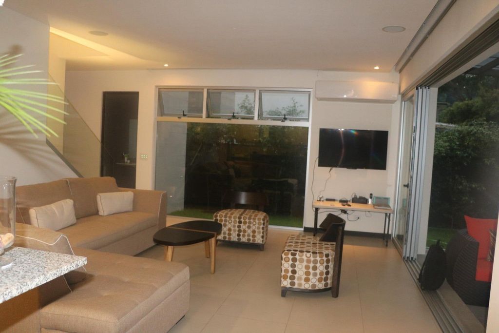 Lujo Excepcional Descubre esta impresionante casa de tres niveles, donde el lujo y la comodidad se encuentran en cada rincón. Ofrecida con la opción de ser adquirida completamente amueblada o sin muebles, esta propiedad se adapta a tus necesidades. En el tercer nivel, disfrutarás de una encantadora terraza semi techada, perfecta para reuniones, parrilladas o noches de cine al aire libre. El primer nivel alberga amplias áreas sociales, que se extienden a una terraza semi descubierta rodeada de un espacioso jardín, ideal para relajarte o entretener a tus invitados. No dejes pasar esta oportunidad de vivir en un hogar que combina elegancia y funcionalidad. MLS# 25-511
