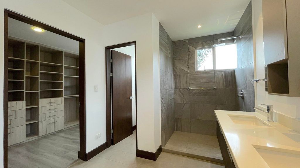 Hermosa casa esquinera en alquiler de 3 niveles, 3 habitaciones más servicio, cocina semi integrada, amplio jardín con terraza, 4.5 baños, 2 parqueos y tanque de agua propio en seguro, bello y moderno condominio con piscina, rancho, GYM y play, ubicado en Jaboncillos de Escazú con excelente y estratégica ubicación y mucha tranquilidad. Esta bella casa cuenta en la 1ra. Planta con sala comedor, amplia cocina semi integrada y equipada con línea blanca completa, baño de visita, amplio jardín en L con terraza, área de pila, 2da. Entrada de servicio y habitación de servicio con baño privado. La 2da. Planta cuenta con amplio family, habitación principal con bello balcón privado con hermosa vista, walk in closet y baño privado, 2 habitación secundarias con closet y un baño secundario. La 3ra. Planta, cuenta con amplio espacio para oficina, sala a de juegos o habitación adicional con espacio para closet o bodega u baño completo, esto acompañado de una espaciosa terraza techada para compartir y disfrutar de la hermosa vista. Características de la Propiedad: · 477 m2 de Construcción · 3 habitaciones más servicio · Family room · 4.5 baños · 2 parqueos bajo techo · Tanque de agua propio · Amplio jardín en L con terraza · Master room con balcón, walk in closet y baño privado · 2 habitaciones secundaria con closet · Baño secundario · Espacio para oficina, sala de juegos o habitación adicional con baño completo · Terraza techada para BBQ Características del Condominio: · 2 piscinas (niños y adultos) · Áreas verdes · Rancho · Play para niños · Rancho · GYM · Seguridad presencial 24/7 · Cámaras de seguridad · Cerco eléctrico No deje pasar esta oportunidad de vivir en esta hermosa y moderna casa en un exclusivo condominio en Jaboncillos de Escazú. Contáctenos y agendemos una visita. Somos Rent-A-House