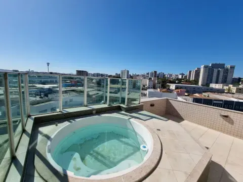 Excelente cobertura para alugar no bairro São Luiz . 1° andar -Sala ampla para 02 ambientes com rebaixamento em gesso e piso porcelanato , cozinha com armários planejados e área de serviços separada. -02 quartos sendo 01 suíte , banheiro social . 2° andar -Sala de TV , quarto pequeno que serve como escritório , banheiro , área externa com hidromassagem e vista definitiva ! -Elevador e 02 vagas cobertas sob pilotis. -Prédio pequeno 100% revestido . -Imóvel estará liberado em Setembro , reserve o quanto antes . Entre em contato para mais informações e agende uma visita ! COD: AEM259062