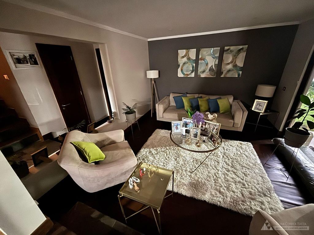 Machali Carretera El Cobre El Guindal campo - ciudad. Hermosa casa consta hall acceso, living comedor desnivel, cocina comedor diario amoblada y equipada, logia, baño visita, 4 dormitorios principal en suite con wolking closet, 3 baños, sala de estar. Gran quincho, piscina, amplio patio, ventanas termo panel, finas terminaciones. Construido 139 mas ampliación Comision 2 %