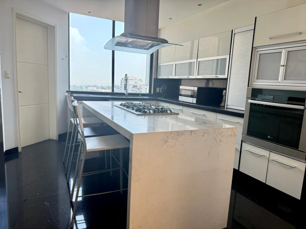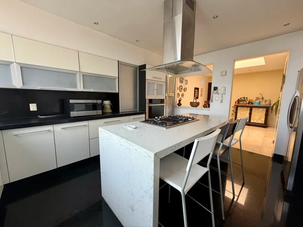 En venta precioso PH en Bosques de las Lomas, en la calle de Bosque de Tabachines, calle tranquila y con excelente ubicación, muy cerca de Santa Fe y con fácil acceso a Constituyentes y Reforma. Amplios espacios, muy iluminado y con acabados de lujo neutros que se pueden adaptar a cualquier estilo. La estancia cuenta con un recibidor muy amplio y gran espacio para sala comedor con área de barra para bar. La cocina cuenta con una isla y con mucho espacio para guardar, con alacena y closet para vajillas. Además de espacio para antecomedor. Acceso directo al área de lavandería y cuarto de servicio con baño completo. En el área familiar se tiene un amplio family y tres recámaras, cada una con su baño, la principal es muy amplia y cuenta con vestidor y las otras dos recámaras con closet. En las áreas comunes se encuentra un salón de fiestas muy amplio y además un gran patio - terraza con área de juegos infantiles y otro salón de eventos más pequeño. Estricta seguridad.