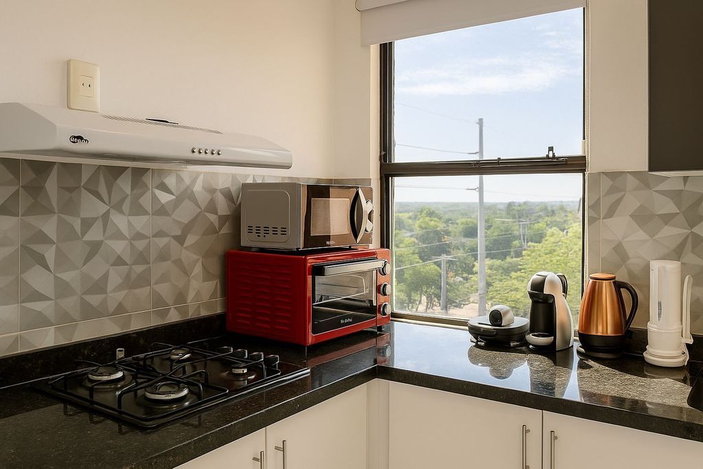 Se alquila amplio departamento de 1 dormitorio amoblado en Mburucuya. !Edificio ubicado sobre la Av Primer Presidente! Living amplio Cocina integrada Lavadero 1 dormitorio Baño social / fliar Balcón Cochera 1 Ascensor Amenities con quincho climatizado y piscina. Precio: 4.500.000 expensas e iva incluido.