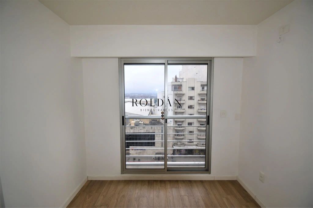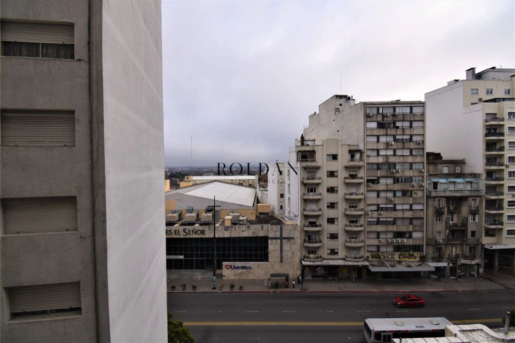 Apartamento en piso alto de 3 dormitorios y cochera a metros de Avenida 18 de Julio.Living comedor al frente con puerta ventana que permite acceso a disfrutable terraza, cocina semi integrada con barra desayunador, muebles aéreos y bajo mesada, ventana y extractor de aire.Pasillo de distribución que permite acceso a